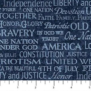 Northcott – Stars & Stripes II Stonehenge Navy Words