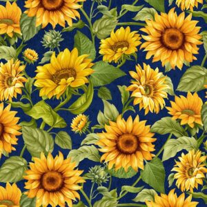 Timeless Treasures – Sunflower Farm Sunflower Garden Navy