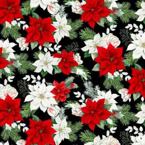 Hoffman Fabrics – Holiday Elegance Natural Gold Poinsettia