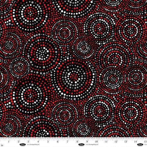 #125388 – Blank Fabrics – Wideback 108″ – Red/Black Hexi Dots