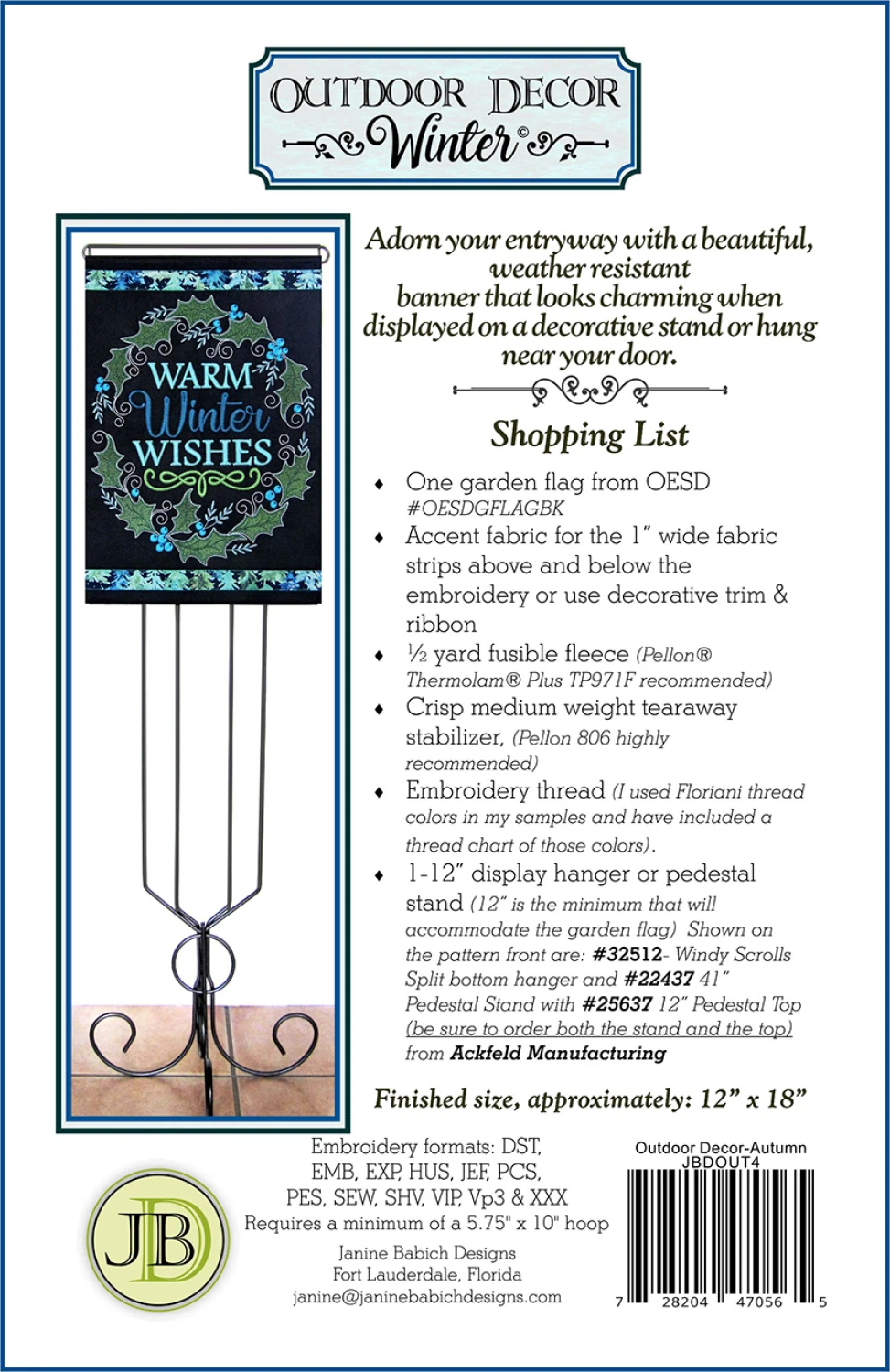 Warm winter wishes to all who enter your home. Adorn your entryway this winter with a beautiful, weather resistant banner that features bold Warm Winter Wishes lettering encircled by a wreath of holly leaves, berries and scrolling curliques. This elegant design looks lovely when displayed on a decorative stand or hung near your front door. Includes embroidery formats: DST, EMB, EXP, HUS, JEF, PCS, PES, SEW, SHV, VIP, VP3 & XXX. This pattern contains two design sizes, 11″ x 13.5″ and 10″ x 11.25″. The minimum hoop requirement is 5 3/4″ x 10″ hoop.