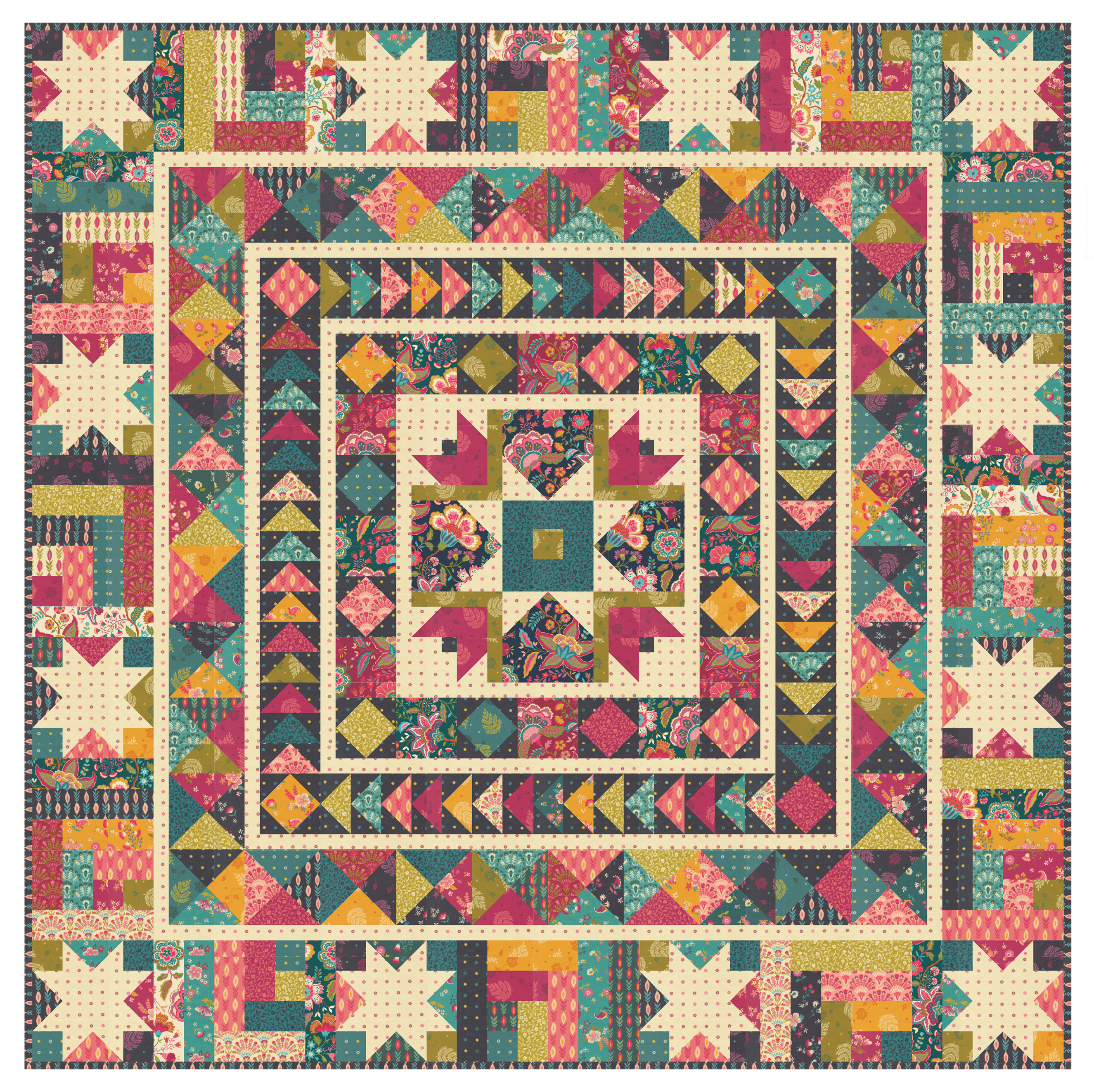 Pre-Order the Starwoven Block of the Month Complete Kit that will be available October 2026! Kit includes all fabrics and pattern to complete this stunning quilt top featuring the SITARA fabrics and Starwoven Medallion Quilt Pattern from Moda. All designed by Crystal Manning, making this a beautiful quilt to have in your collection.